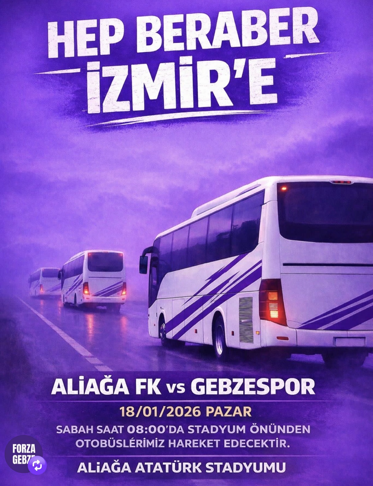Gebzesporlu taraftarlar, Aliağa FK deplasmanı için İzmir’e hareket ediyor.